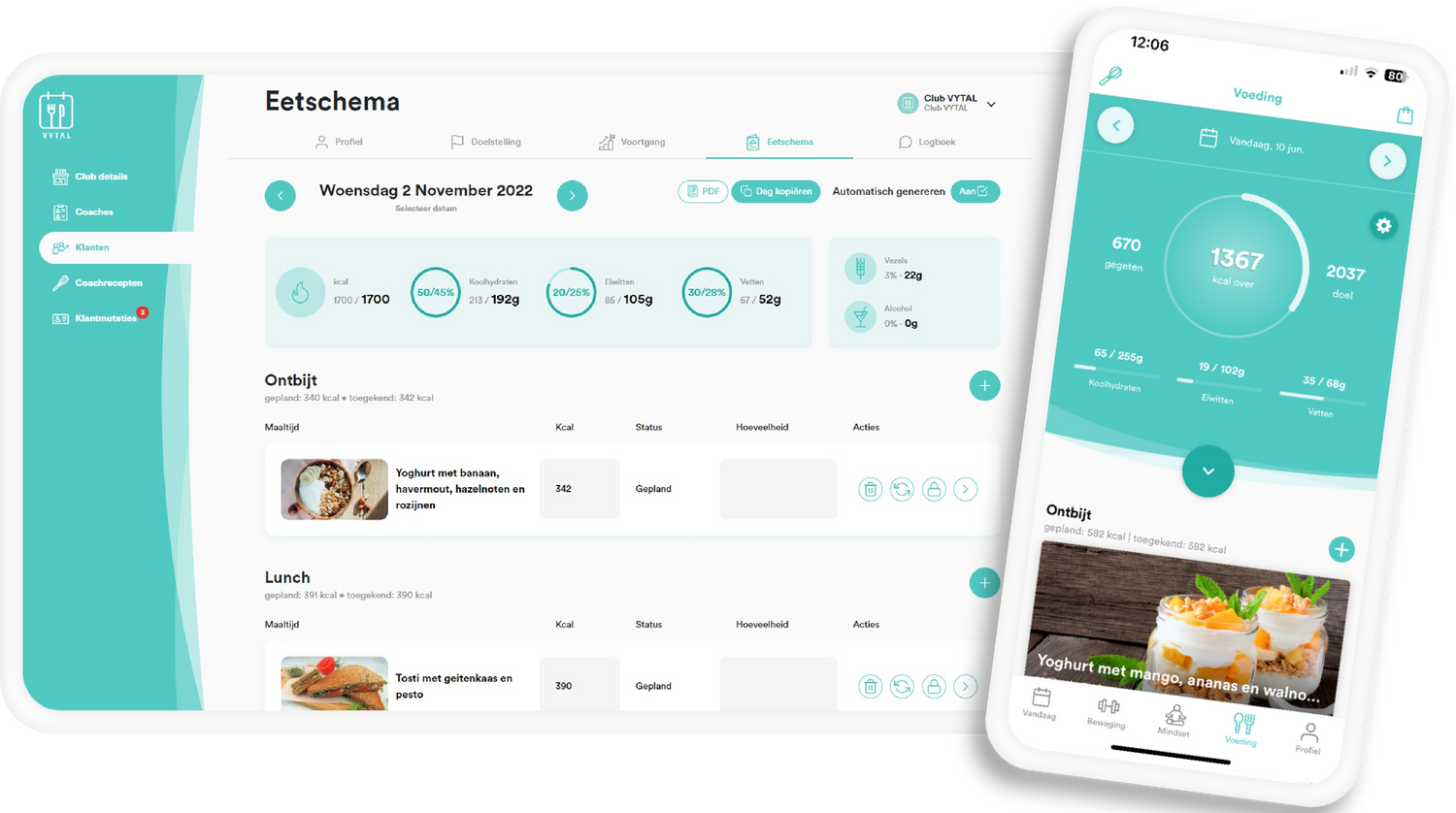 De VYTAL-app stelt persoonlijke menu's samen op basis van individuele doelen, energiebehoefte en voorkeuren. Hierbij wordt rekening gehouden met dieetwensen, allergieën, intoleranties en gewenste macroverdelingen. Dit maakt het eenvoudiger om af te vallen, aan te komen of gezonder te eten zonder zelf calorieën te hoeven tellen of maaltijden te plannen.